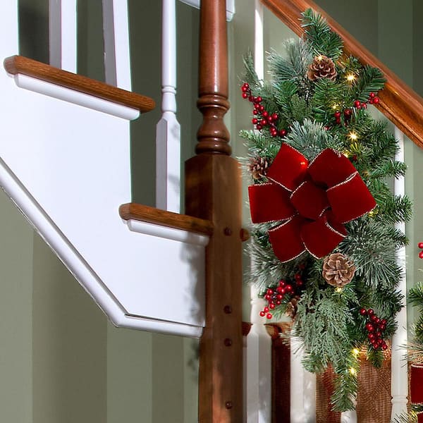 26 in. Battery Operated Pre-Lit LED Artificial Classic Staircase Swag with Red Bow