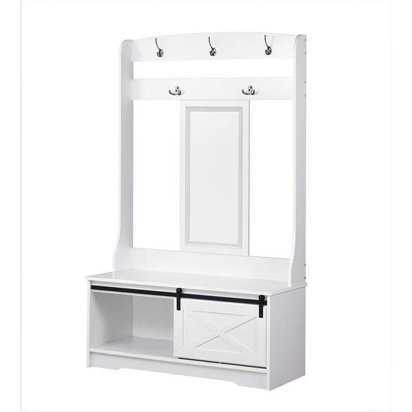 • A transitional hall tree, shoe bench, lower cabinet & five hooks