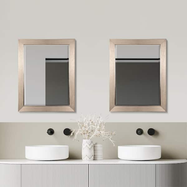 28 in. x 22 in. Brushed Nickel Metal Rectangular Framed Beveled Wall Mirror