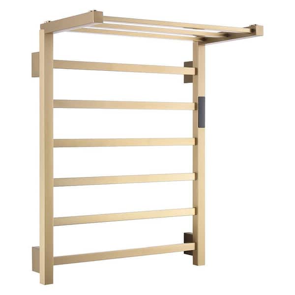 Heated Towel Rack 6-Bar Towel Warmer Rack . Wall Mounted Electric Towel Drying Rack with Timer, Brushed Gold