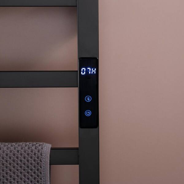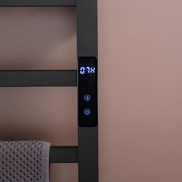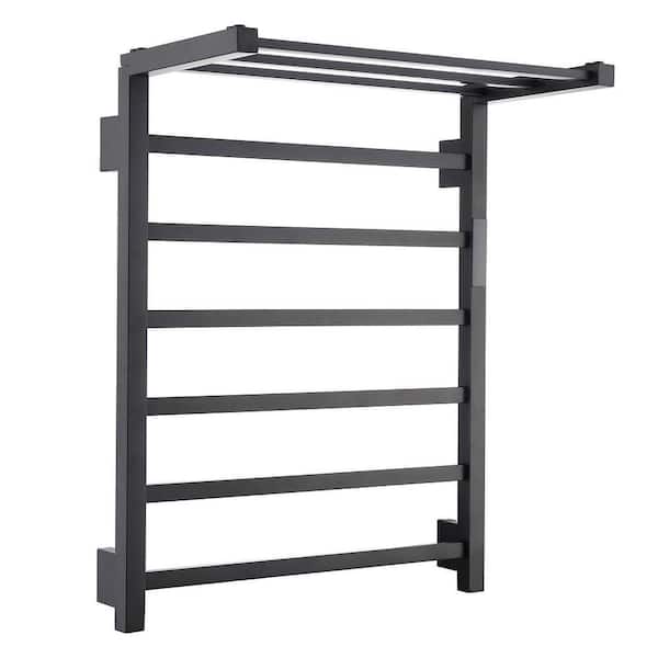 Heated Towel Rack 6-Bar Towel Warmer Rack . Wall Mounted Electric Towel Drying Rack with Timer, Matte Black