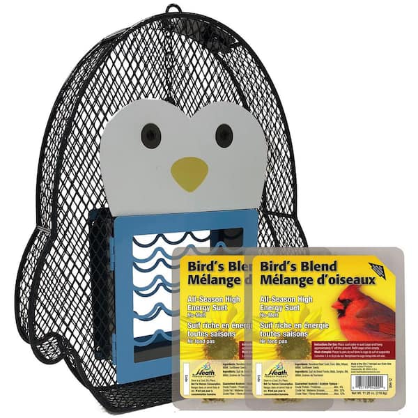 Heath Whimsical Penguin Suet 'n Seed Bird Feeder for Suet Cakes and Sunflower Seeds With 2 FREE Suet Cakes Included