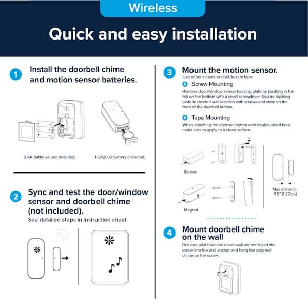 White Plastic Wireless Sensor and Battery Operated Chime Kit with Gray Fabric