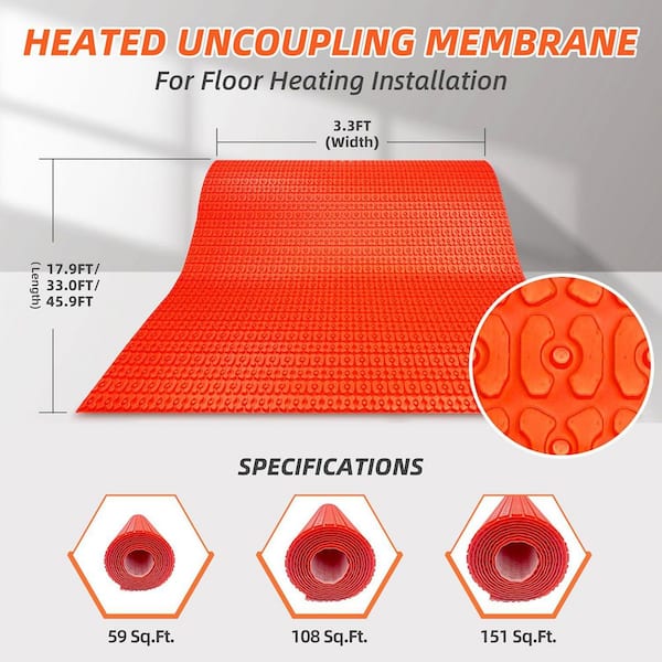 Heating Cable Uncoupling Membrane 108 Sq. Ft. Waterproofing Underlayment Crack Prevention Electric Floor Heating Systems