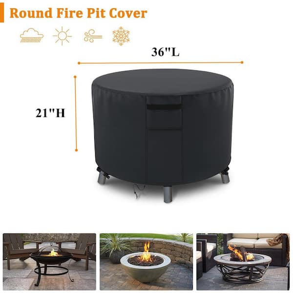 Heavy-Duty 37 in. Dia x 21 in. H Black Outdoor Round Fire Pit Cover Waterproof Durable and UV-resistant