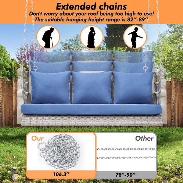 Heavy Duty 900 LBS 3-Person Wicker Porch Swing, Outdoor Hanging Swing Chair with Cup-Holder, and Light Blue Cushions