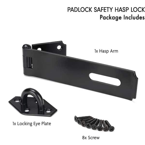 Heavy Duty Door Hasp Latch 7-3/4 Extra Thick Steel Safety Gate Lock Black Finish Durable Rust-Resistant Clasp