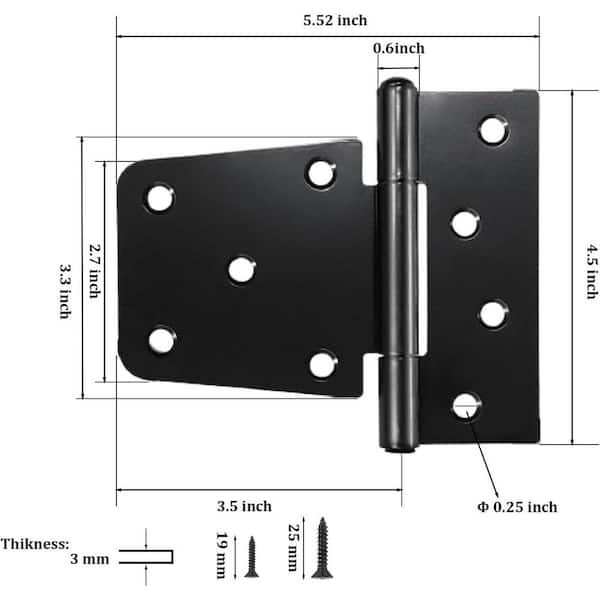 Heavy Duty Gate Hinges 3.5 x 4.5 x 1.2 Black Iron Shed Door T Hinges for Barn Wood Fence with 144 Screws (8-Pack)