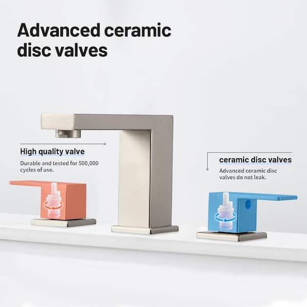 304 stainless steel 8 in. Widespread Double Handle Bathroom Faucet with Drain Kit Included in Brushed Nickel