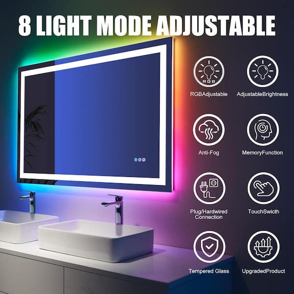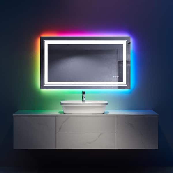 40 in. W x 24 in. H Rectangular Frameless RGB LED Light and Anti-Fog Wall Bathroom Vanity Mirror