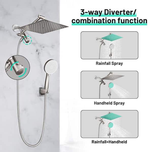 Rain Full 5-Spray Patterns 10 in. Wall Mount Dual Shower Heads and Handheld Shower Head 1.8 GPM in Brushed Nickel