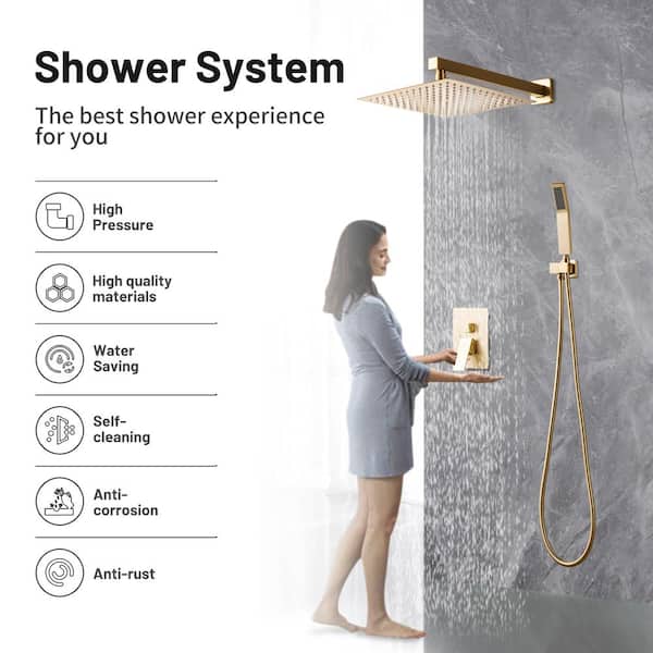 Rain Single Handle 2-Spray 10 in. Shower Faucet Handheld Combo with Valve 1.8 GPM Adjustable Dual Shower Heads in Gold
