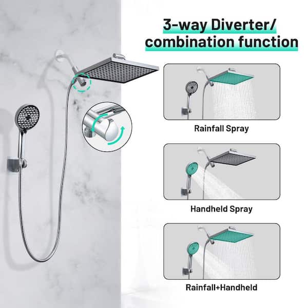 Rainfall Shower Head Combo 6-Spray 12 in. Wall Mount Dual Shower Heads and Handheld Shower Head with 1.8 GPM in Chrome