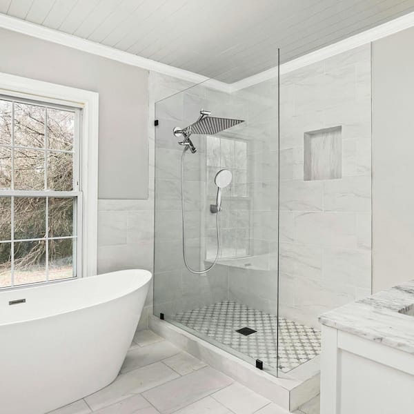 Rainfull 5-Spray Patterns 1.8GPM 10 in. Wall Mount Dual Fixed and Handheld Shower Head in Chrome Color