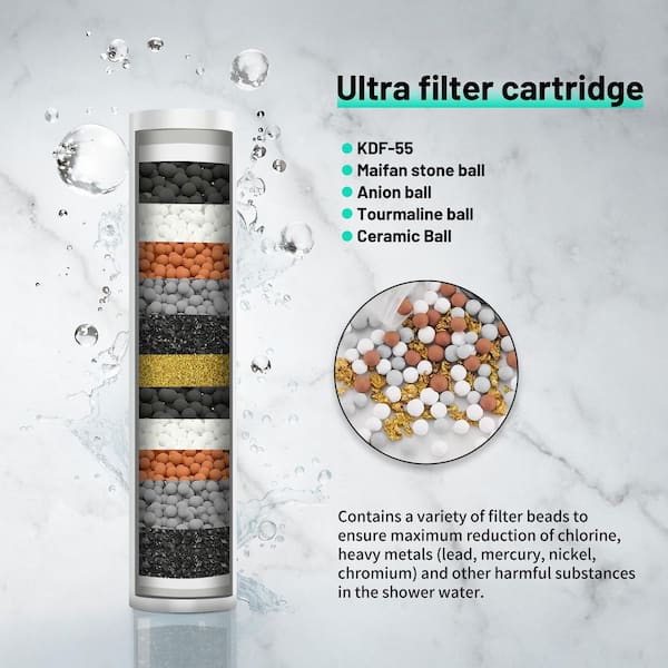 Rainfull Two-in-One 6-Spray 12 in. Dual Wall Mount filtered Shower Head Fixed and Handheld Shower Head 1.8 GPM in Black