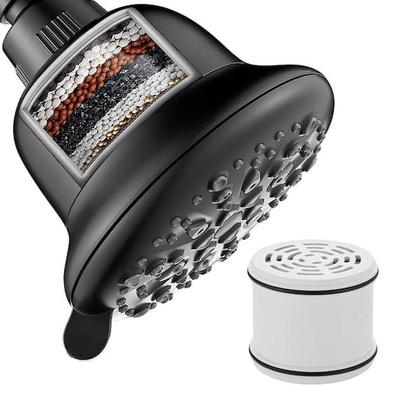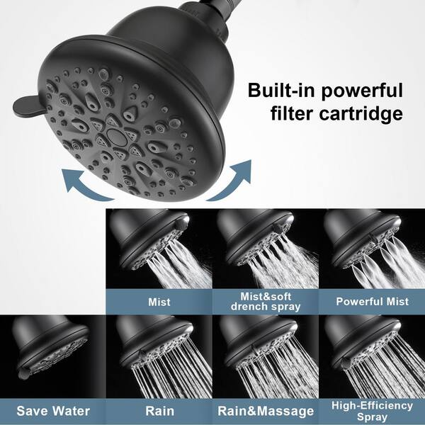 Simple 7-Spray Patterns 4.7 in. Wall Mount Adjustable Fixed Shower Head 1.8 GPM with Filter in Matte Black
