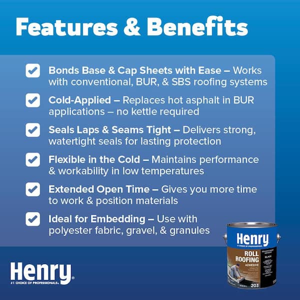 • Adheres and waterproofs layers of rolled roofing together