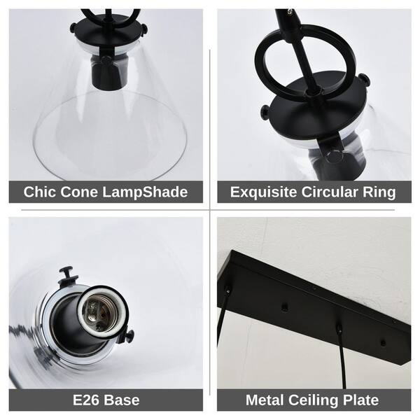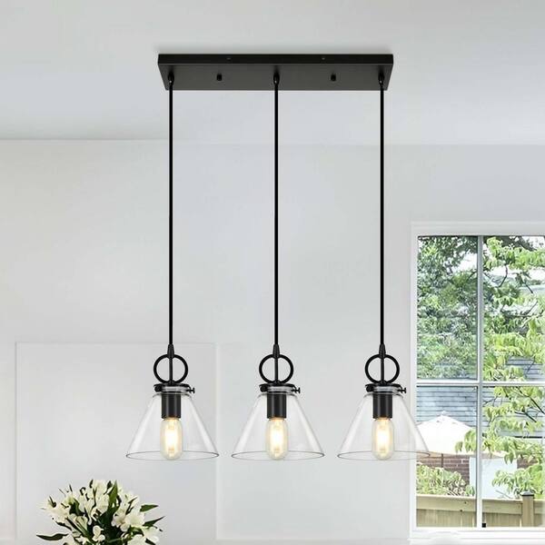 Jasslynn 40 Watt 3-Light Matt Black Modern Pendant Light with Cone Clear Glass Shade for Kitchen Foyer Living Room
