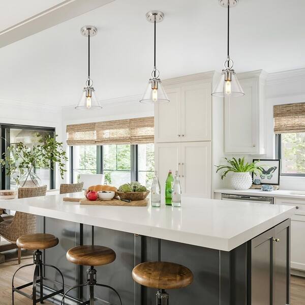 Jasslynn 60 Watt 1 Light Brushed Nickel Industrial Pendant Light with Clear Cone Glass Shade for Dining Room, Kitchen