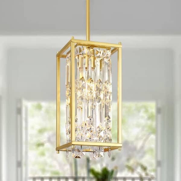 Jasslynn 60 Watt 1 Light Golden Luxury Pendant Light with Rectangle Crystal Glass Shade for Kitchen Living Room