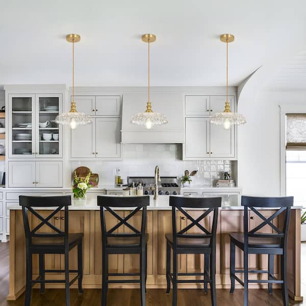 Jasslynn 60W 11.8 in. 1 Light Gold Pendant Light with Flower-Shape Glass Shade, Modern Mid-Century Hanging Island Light