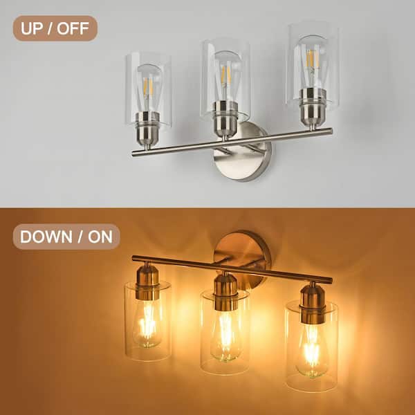 Nafissa 18.11 in. 3-Light Brushed Nickel Vanity Light Over Mirror Light With Clear Glass Lampshade for Bathroom