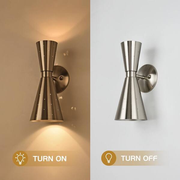 Nafissa 5.51 in. 2-Light Modern Brushed Nickel Sconce WallLight with Hourglass Metal Shade for Living Room Bedroom Foyer