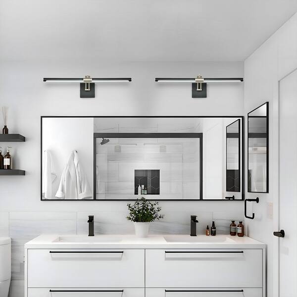 Wigston 23.8 in. Black and Brushed Nickel LED Modern Wall Sconce, 15W 6000K White Cool Light Wall Mount Light