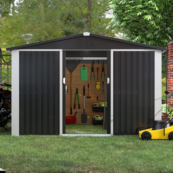 103.74 in. W x 72.83 in. H x 75.59 in. D Multifunctional Outdoor Metal Storage Shed with air vents, in Black