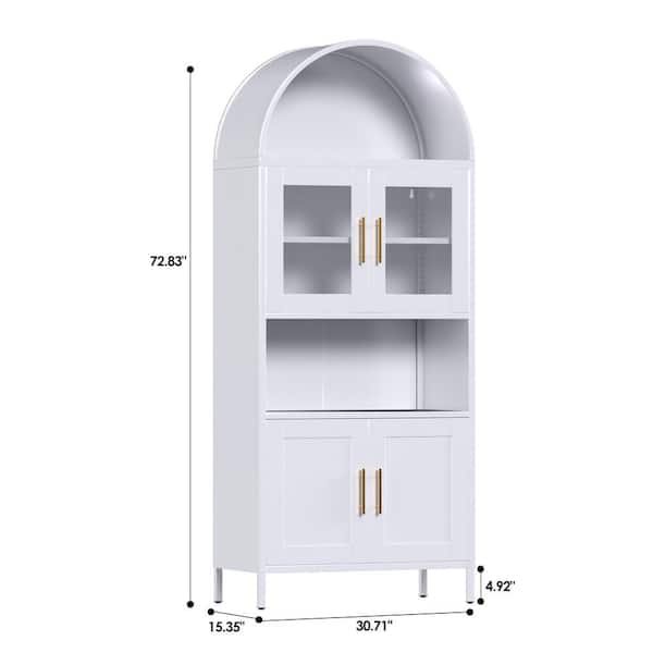 30.71 in. W x 72.83 in. H x 15.35 in. D Arched Steel Freestanding Cabinet with Adjustable Shelves for Living Room, White