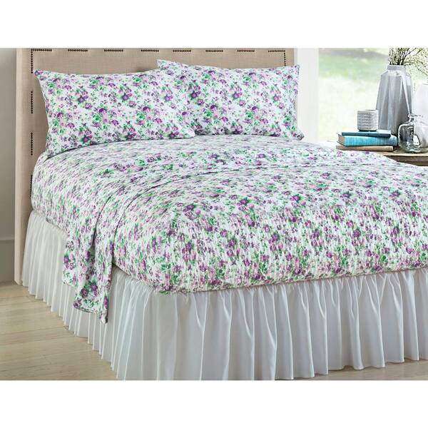 Heritage 4-Piece Lilac Floral Microfiber King Sheet Set