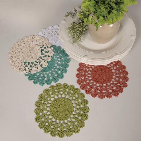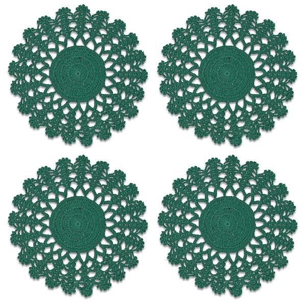 Crochet Envy Lacy 8 in. Teal Round Doily (Set of 4)
