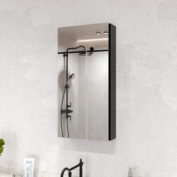 Flicker 12 in. W x 24 in. H Rectangular Aluminum Recessed/Surface Mount Medicine Cabinet with Mirror in Black