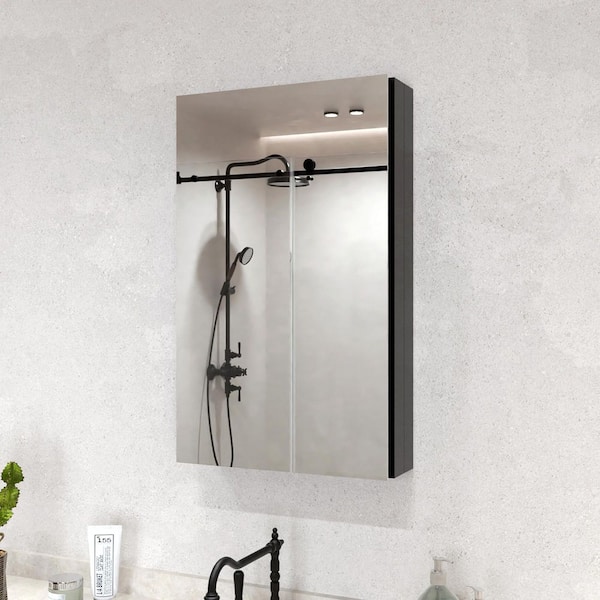 Flicker 15 in. W x 24 in. H Rectangular Aluminum Recessed/Surface Mount Medicine Cabinet with Mirror in Black