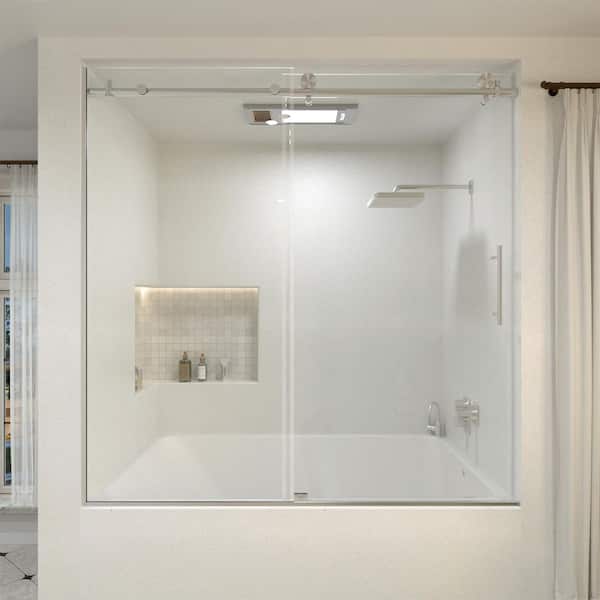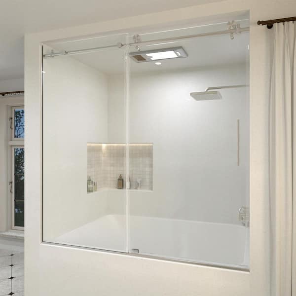 Muse 60 in. W x 60 in. H Sliding Bath Tub Door in Semi Frameless in Brushed Nickel with Clear Glass