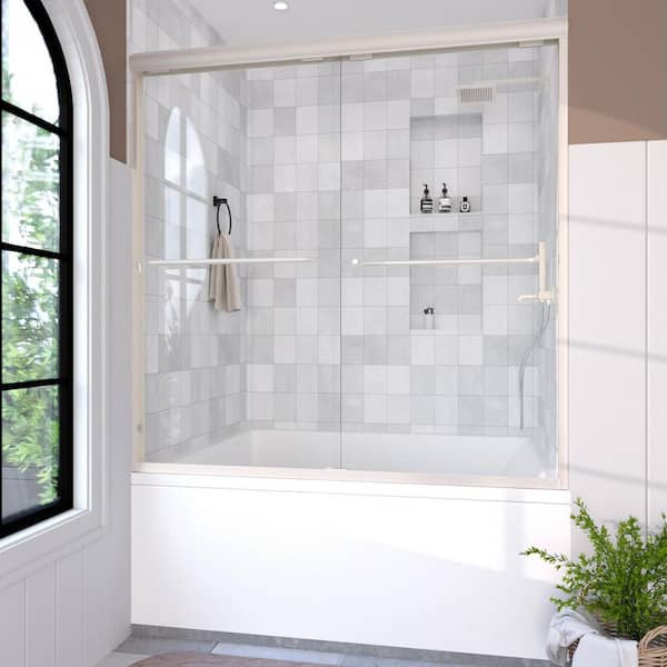 Sivilian 60 in. W x 56 in. H Sliding Bath Tub Door in Semi Frameless in Brushed Nickel with Clear Glass