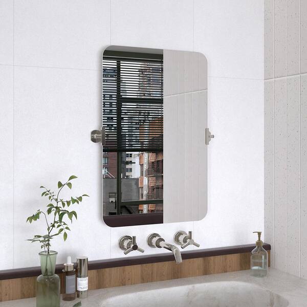 Yexee 30 in. W x 20 in. H Rectangular Framed Adjustable Tilt Wall-Mounted Bathroom Vanity Mirror in Chrome