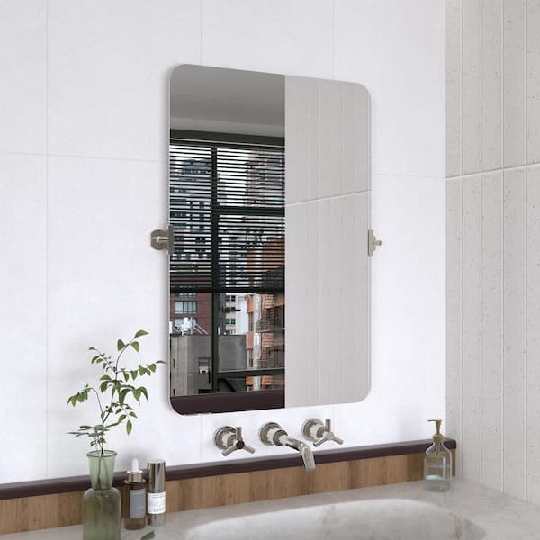 Yexee 36 in. W x 24 in. H Rectangular Framed Adjustable Tilt Wall-Mounted Bathroom Vanity Mirror in Chrome