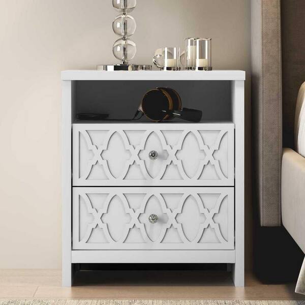 Heron White 2-Drawer 22.8 in. Wide Nightstand - Set of 2 (Effortless Assembly and Stylish Storage Solution)