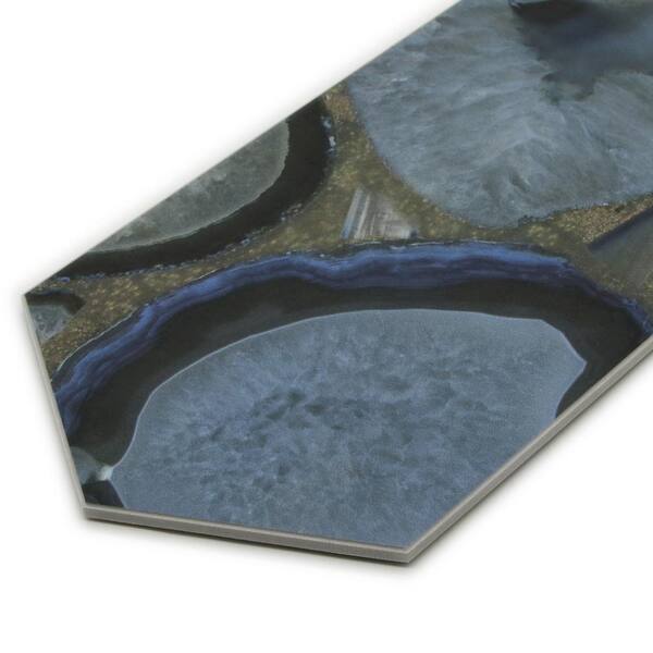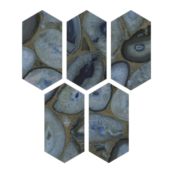 Hexagon Marble 4 in. x 8 in. Agate Blue Peel and Stick Backsplash Stone Composite Wall Tile 36-Tiles, 6.8 sq. ft.