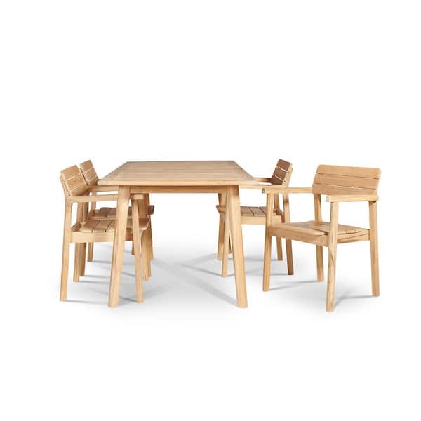 Modurn 5-Piece Teak Rectangular Table Outdoor Dining Set with Stacking Armchairs