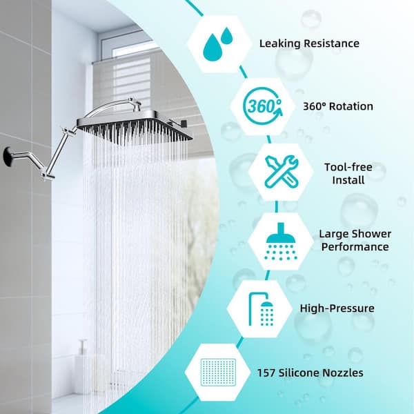 5-Spray Patterns with 1.8 GPM Showerhead face diameter 10 in. Wall Mount Fixed Shower Head in Chrome Finish