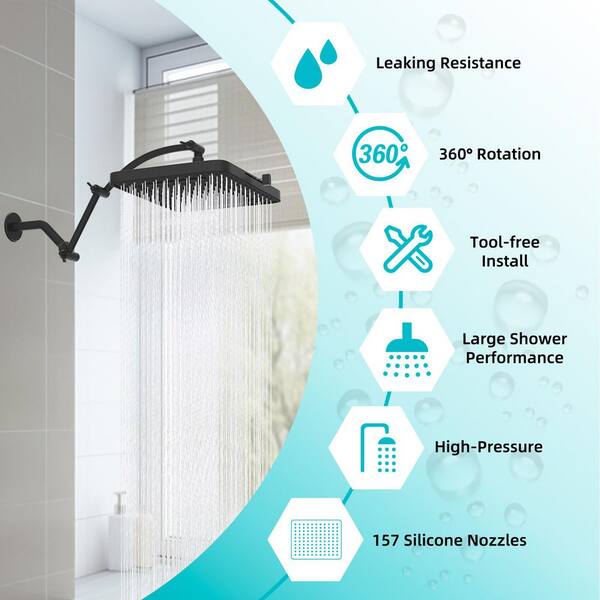 5-Spray Patterns with 1.8 GPM Showerhead face diameter 10 in. Wall Mount Fixed Shower Head in Matte Black Finish
