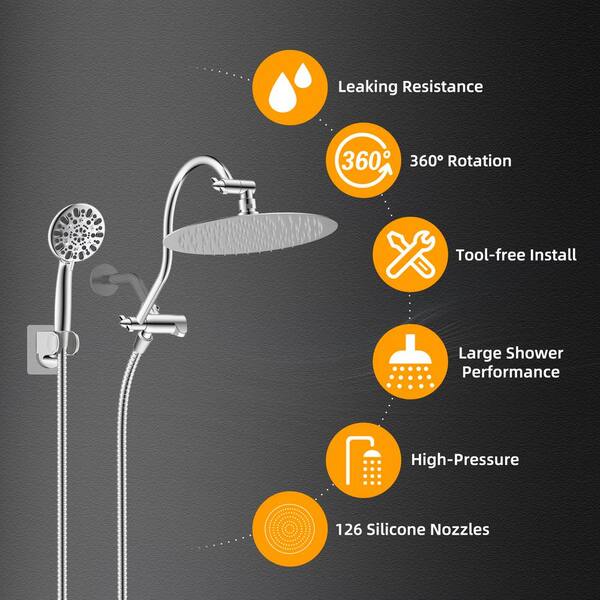 7-Spray 10 in. Dual Wall Mount Fixed and Handheld Shower Head 1.8 GPM in Chrome Finish with 12 in. Extension Arm