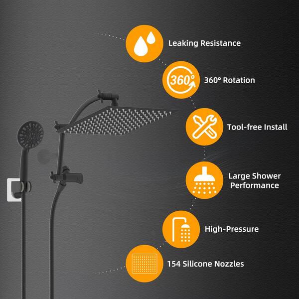 Metal 7-Spray 12 in. Dual Wall Mount Fixed and Handheld Shower Head 1.8 GPM in Matte Black Finish