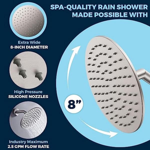 High Flow Shower Head 1-Spray Patterns with 2.5 GPM 8 in. Wall Mount Rain Fixed Shower Head in Brushed Nickel.