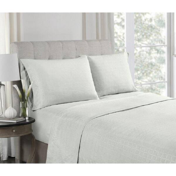 4-Piece Grey Embossed Microfiber Full Sheet Set