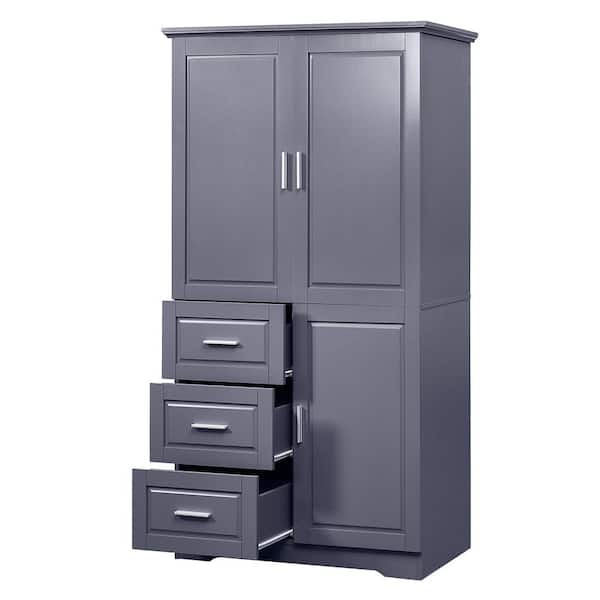 High-Quality 33 in. W x 18.1 in. D x 62 in. H Gray Linen Cabinet with Adjustable Shelves and Anti-Tip Device