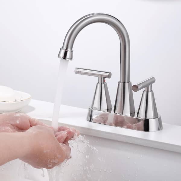 High-gooseneck 4 in. Centerset Double Handle 360° rotation Bathroom Faucet with Drain kit Included in Brushed Nickel