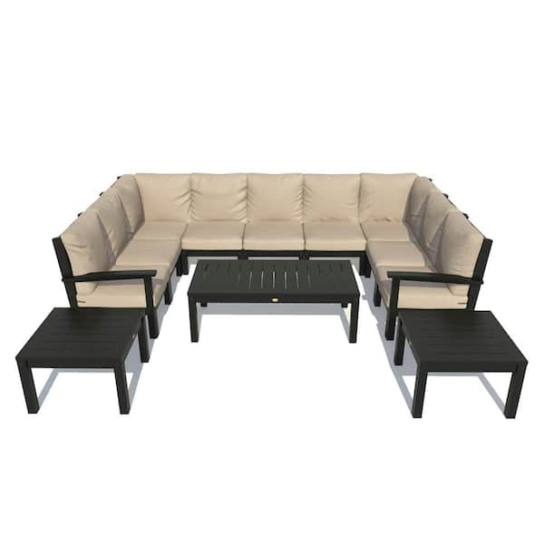 Bespoke Deep Seating 12-Piece Plastic Outdoor Sectional Set with Conversation Table and 2 Side Tables with Cushions